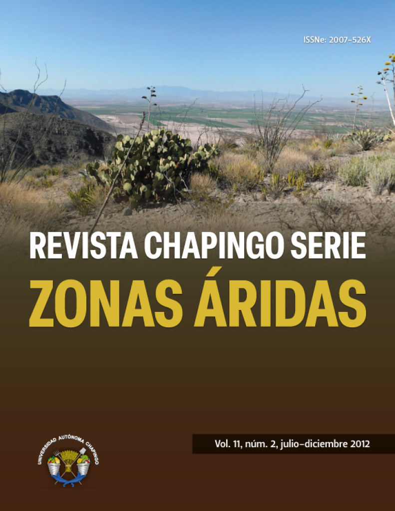 The objective was to determine planting quality and to identify methods to increment efficien- cy in mesquite reforestations performed in Durango, México. Seventeen commercial plots, established as governmental reforestation program during 2009 and 2010 were evaluated in Nombre de Dios (5), Cuencamé (4), Lerdo (2), Pánuco de Coronado (2), Tlahualilo (2), Durango (1) and Mapimí (1). Evaluations were performed during january and february, 2011 using circular and systematic sampling method and only lineal sampling method was used at 10 de Abril, Cuencamé. Data were taken for geographical coordinates, altitude, planting orientation (exposure), reforestation type, planting area, plant survival, plant height, basal stem diameterand ecological traits related to mes- quite survival in each location. In 2011 an experimental plot was established using a Randomized Com- plete Block design in order to determine the effect of four hydrogel doses (0, 20, 30 y 40 g·plant-1) on mesquite plant condition evaluated 63 days after transplant. Commercial plots altituderanged between 1,099 m in San Francisco de Afuera, Tlahualilo, to 2094 m in Lomas de San Juan, Cuencamé, Dgo. Ze- nithal (Z) exposure showed the highest frequency (9), followed by SE (4), S (2), E (1) and NE (1). The real frame (3 m x 3 m, 3 m x 2.5 m) planting method was the most used, although triangular planting method was also observed in two plots. Commercial plots planting area ranged between 4 ha in Sapio- riz, Lerdo, to 100 ha in San Francisco de Afuera, Tlahualilo. High number of plots (7) showing 0 % of mesquite plants survival was observed, while the rest (10 plots) ranged from2.7 % (Lomas de San Juan, Cuencamé) to 58.2 % (San José de Acevedo P2, Nombre de Dios). Plant height ranged from 7.3 cm (San José de Acevedo P1) to 27.8 cm (Ejido Severino Ceniceros). Stem basal diameter showed variations between 1.5 cm (San José de Acevedo P1) to 5.5 cm in Lomas de San Juan and 10 de Abril. There were low rates of survivalin mesquite plantations performed during 2009 and 2010 in Durango, Mexico. One of the most important factors showing strong influence over mesquite plant survival was water stress and then effects of using hydrogel was validated in order to retain water in soil. Treatment including 20 g of hydrogel showed possibilities in order to increment survival in mesquite plantations under field conditions. Forester instruction is needed in order to improve mesquite survival trough better planting techniques which include the use of locally collected seed of adapted species such as Prosopislaevigata, use of plots with deep soils and hydrogel application, as a water retention method in soil.