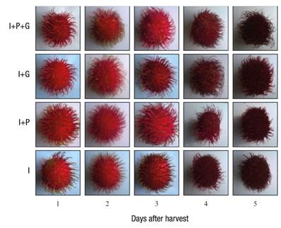 The rambutan is round or ovoid and has either a red or yellow pericarp, long spinterns and a white or translucent edible aril (Arias-Cruz, Velásquez-Ramírez, Mateus-Cagua, Chaparro-Zambrano, & Orduz-Rodríguez, 2016). Its ripening pattern suggests that it is a non-climacteric fruit (Caballero-Pérez et al., 2011), so they are harvested when they are ripe for consumption and have an optimal external appearance (Tindall, Menini, & Hodder, 1994). However, due to its morphological and physiological characteristics, it is a highly perishable fruit, since its shelf life does not exceed seven days after being harvested. This is because the spinterns and pericarp are easily dehydrated and oxidized, resulting in a dark and undesirable appearance that limits its marketing potential for fresh consumption (Hernández-Arenas et al., 2010).