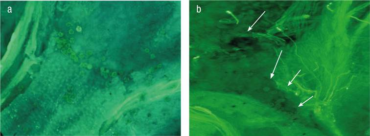 The collected flowers were fixed with FAE (formalin, glacial acetic acid and 70 % ethanol, at a 1:2:17 v/v ratio) until observation. The fixed flowers were processed according to the procedure described by Cuevas, Rallo, and Rapoport (1994). The staining was done with aniline blue and immediately afterwards the observations were made under fluorescence microscopy as proposed by Martin (1958) using an epifluorescence microscope (Nikon Labophot, Tokyo, Japan). In each flower sampled, pollen adherence to stigma, pollen germination, pollen tube growth and fertilization levels were quantified. The results of the 20 flowers were averaged for each treatment and pollination date.